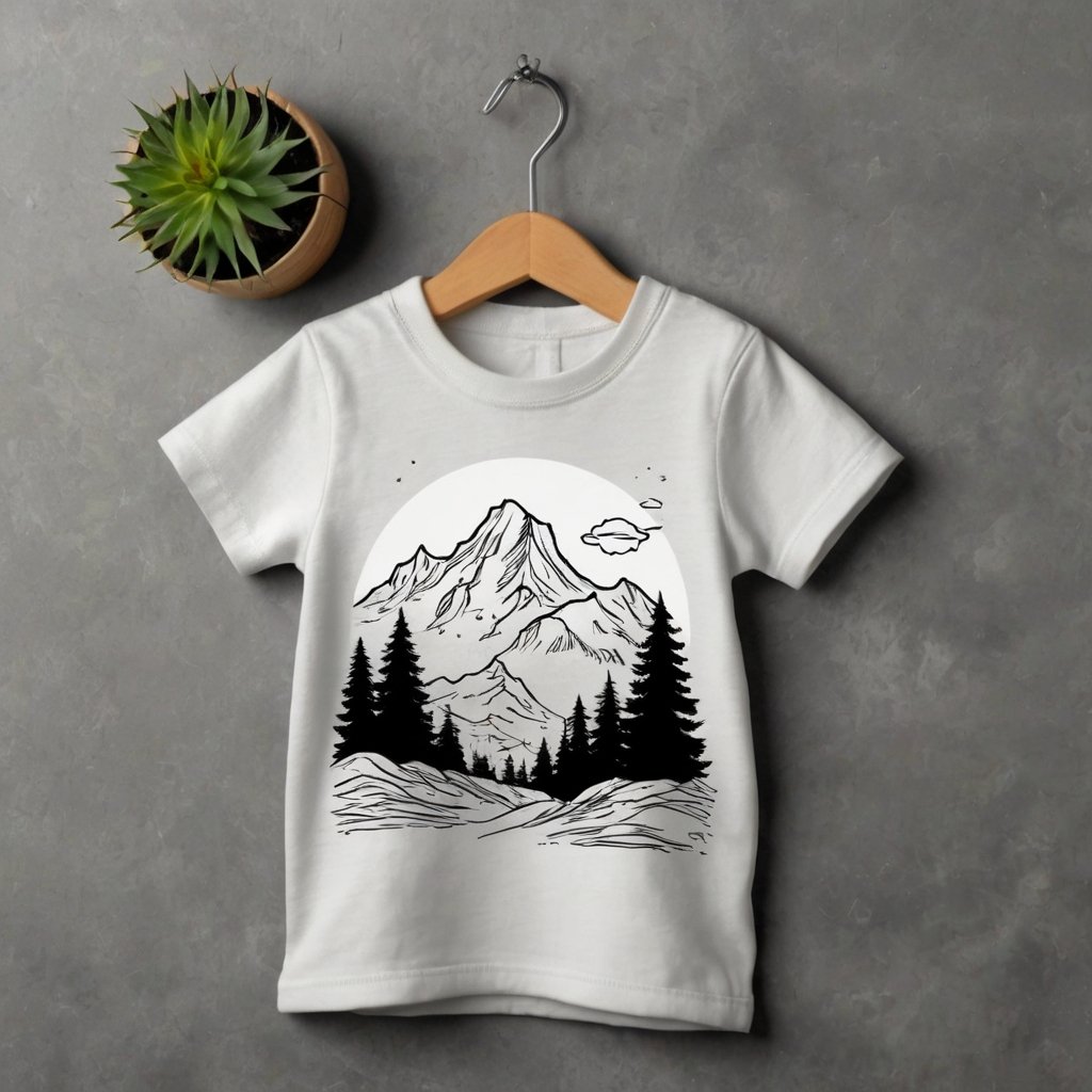 Tee-Shirt motif montagne en nuance de gris / noir.